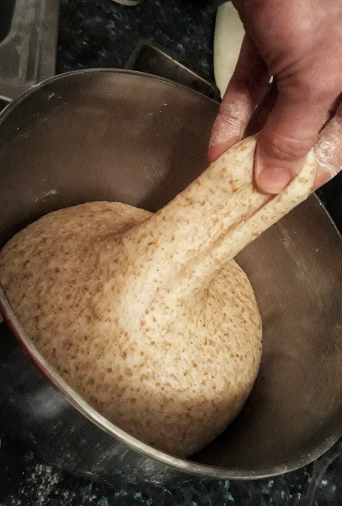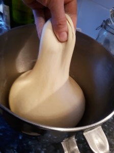 The super-stretchy dough after its first proof