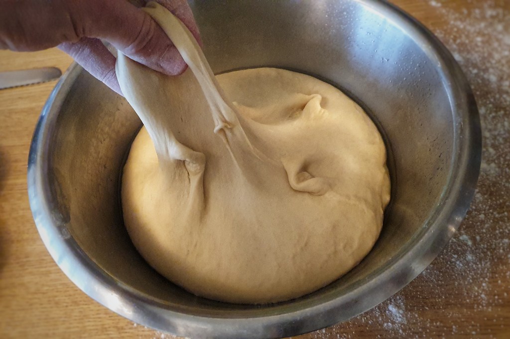 Roll each piece of dough into tight balls using a very small amount of flour to prevent it sticking and then arrange on the baking tray. Cover and allow to prove – this usually takes a third of the time as the first rising.[11]