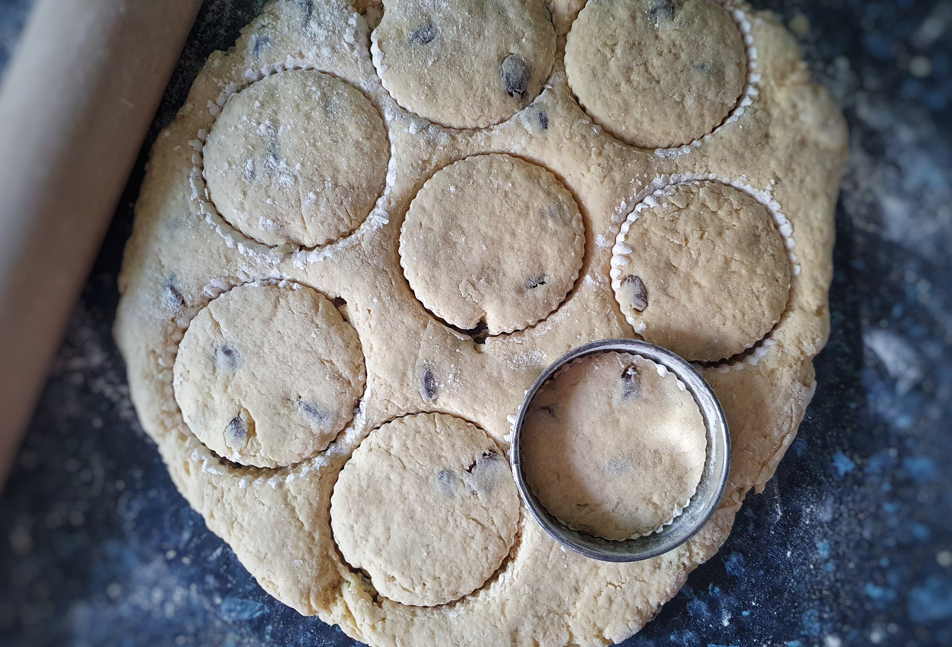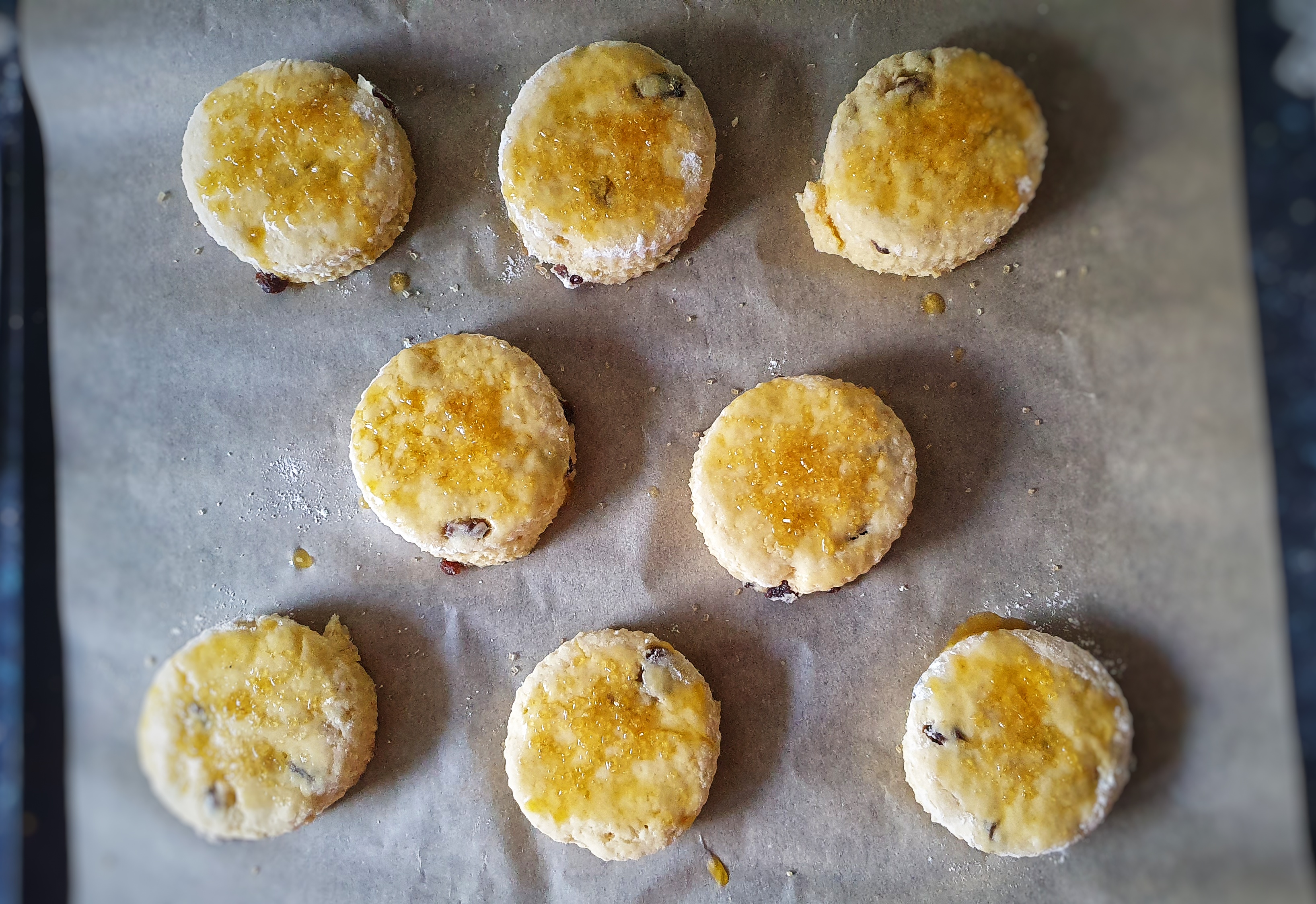 Bring the leftover dough together with your hands to form a cohesive dough without kneading it too much – we don’t want tough scones! Roll out again and cut out. Repeat until all of the mixture is used up.