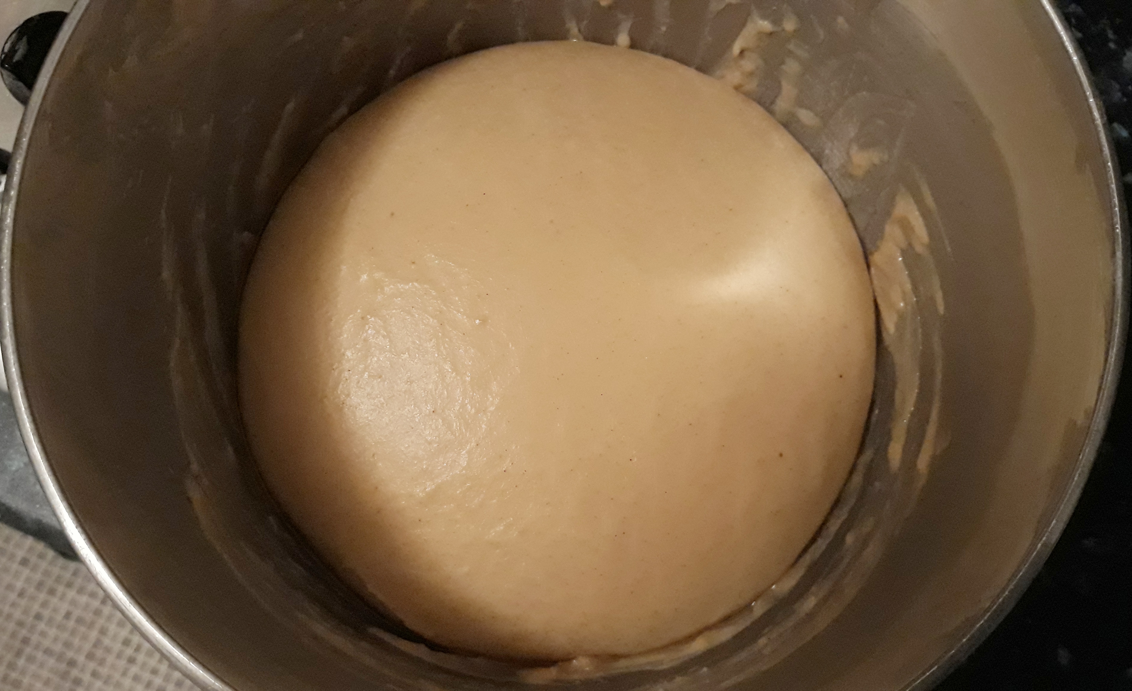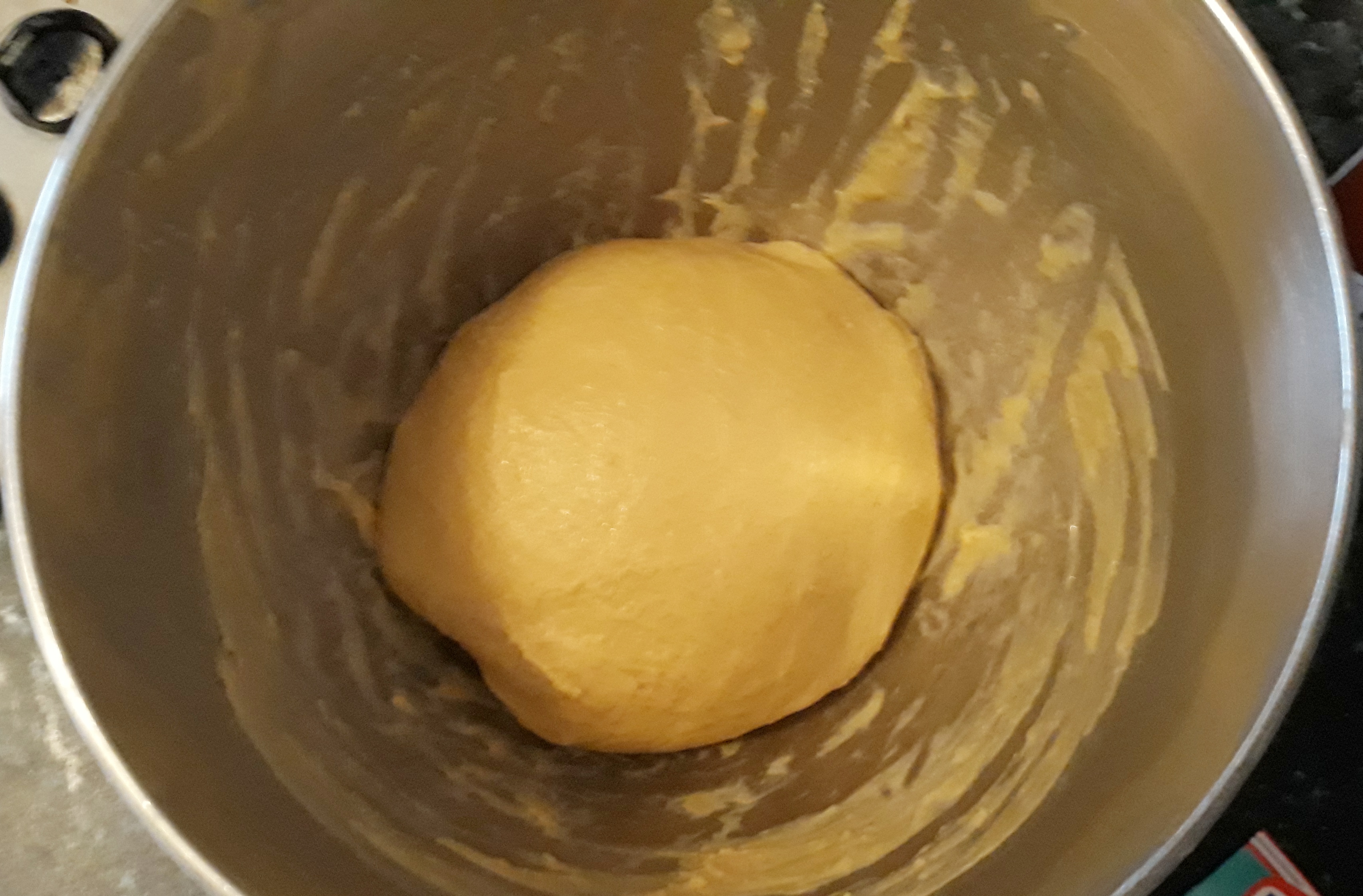 Mix together the flour, yeast, salt, sugar and mixed spice in a bowl, then make a well in the centre. Beat an egg into the milk, and pour it into the well, adding the butter too. If you have an electric mixer, use the dough-hook attachment and mix slowly until everything is incorporated, then turn the speed up a couple of notches and knead for around 6 minutes. The dough should be tacky, glossy, smooth and stretchy. If you don’t have one, get stuck in with your hands and knead by hand on a lightly-floured worktop. It’s a very sticky dough at first, so it’s a messy job, but it will come together.