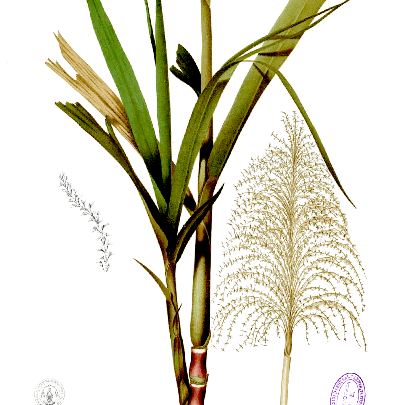 Botanical plate (c.1880) of sugarcane, Saccharum officinarum