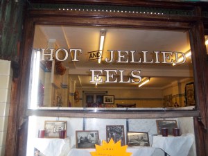 Eel, pie and mash houses are bits of living history and are very much a London invention. The houses were a Victorian creation, though sellers had had stalls since the eighteenth century. Eels were very cheap and just swimming about in the River Thames. Strangley, they took off during a time when the heavily-polluted Thames did not have any eels swimming in its waters. The eels did arrive on the Thames though; brought up on barges from Holland. These days they come from Ireland.