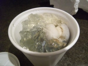 Eels have quite a delicate flavour, so they went very well with the bland potatoes and liquor; a great winter-warmer. I also ordered some jellied eels – cooked eels set in an aspic jelly made from eel bones. They are an acquired taste, apparently. The eels themselves were good but eating them cold with the jelly was not the gastronomic treat I was expecting. Hey-ho, you win some, you lose some.